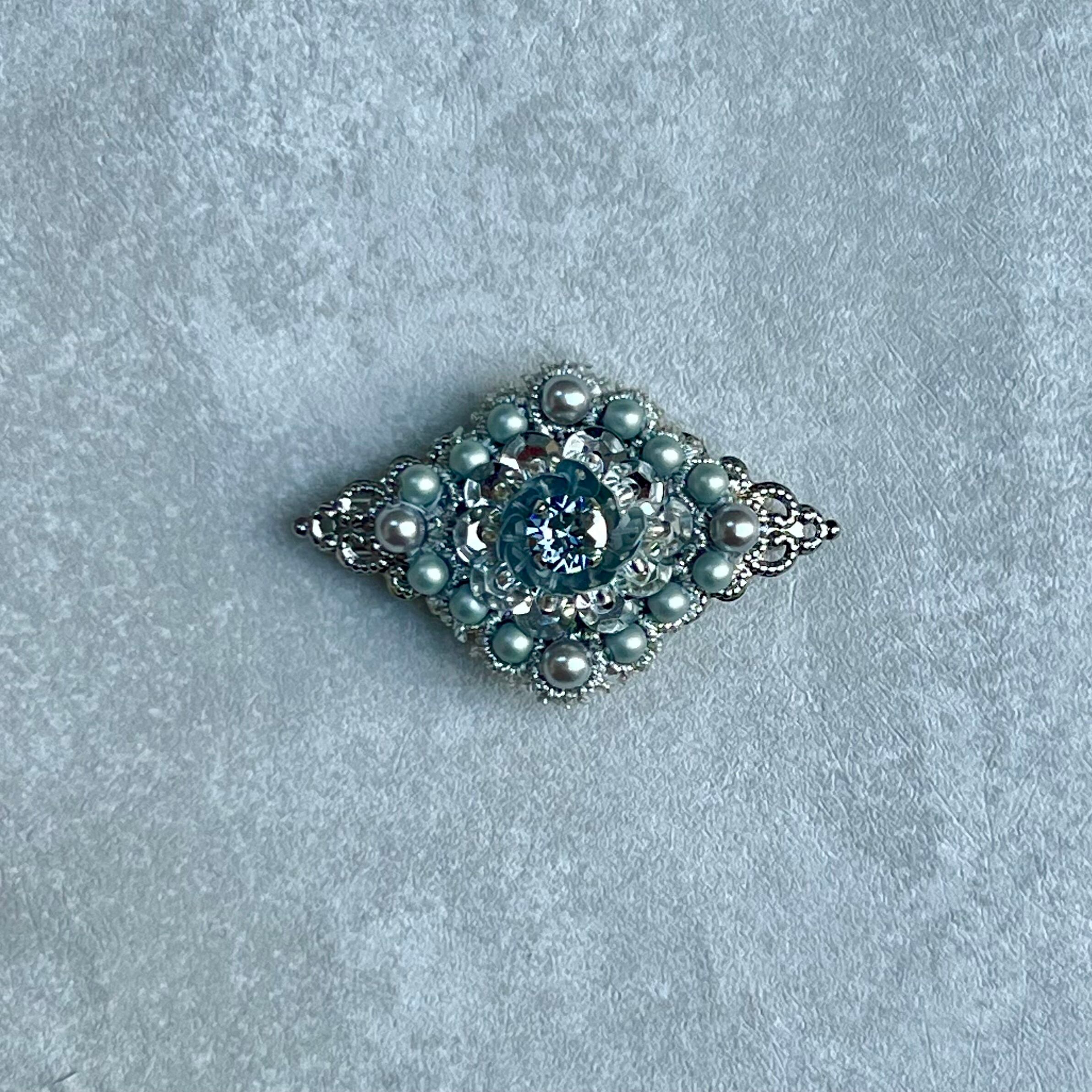 繊細でエレガントなデザインが魅力のハンドメイドブローチです。
